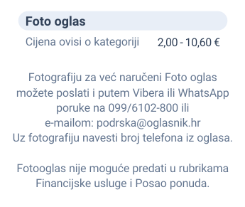 Za dodatne informacije možete nas kontaktirati na telefon 01 6102 885 ili mail podrska@oglasnik.hr